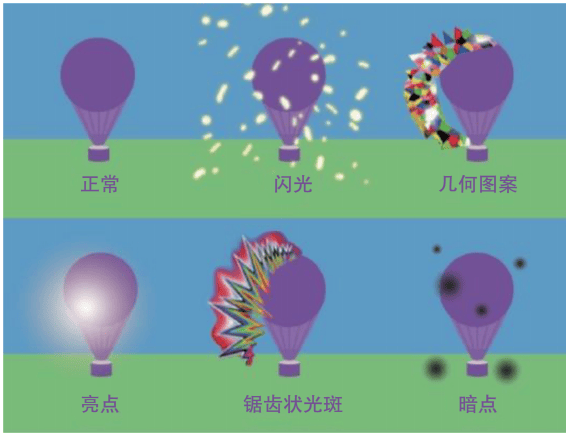 ▲典型先兆症状-视野出现暗点、闪光、锯齿状光斑等