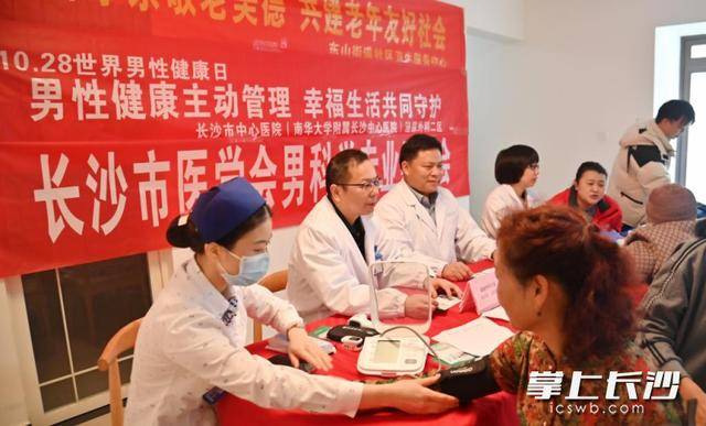 长沙晚报掌上长沙10月28日讯(全媒体记者 杨蔚然 通讯员 李大波 汤雪)10月28日是第25个“世界男性健康日”,今年主题是“倡导健康生活方式,促进男性主动健康”。一场由长沙市中心医院(南华大学附属长沙中心医院)举办的大型公益义诊活动,在高铁新城社区居民活动中心火热进行。长沙市名医、长沙市中心医院泌尿外科二区主任刘玉明,医务部副主任肖小旺、东山社区卫生服务中心驻点专家凌婵现场坐诊。为居民送上“家门口”的专业医疗服务和健康指导。