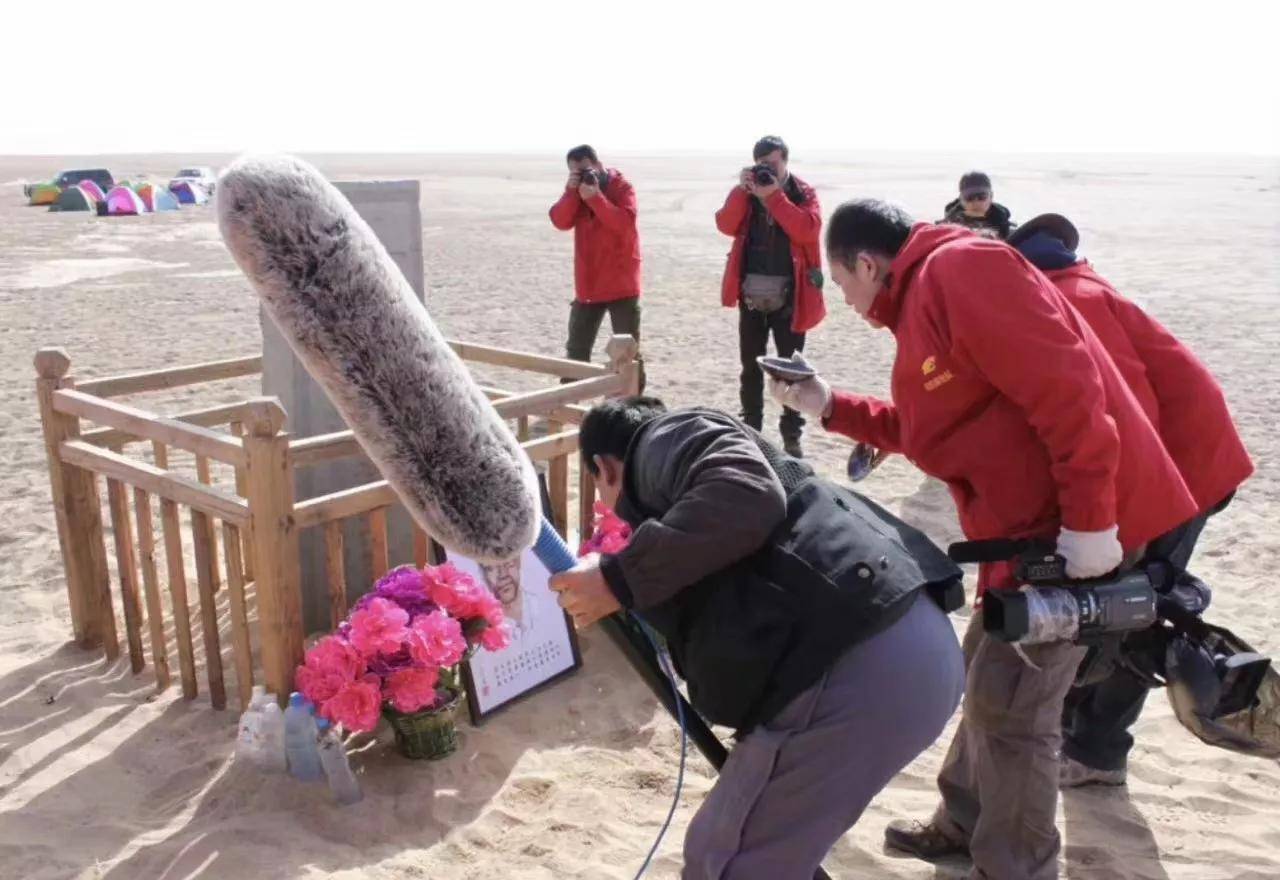图2-3:2010年4月,他们与中央电视台一起,带着彭加木的战友马仁文、闫鸿建前往罗布泊,举行了彭加木遇难30周年的纪念活动。