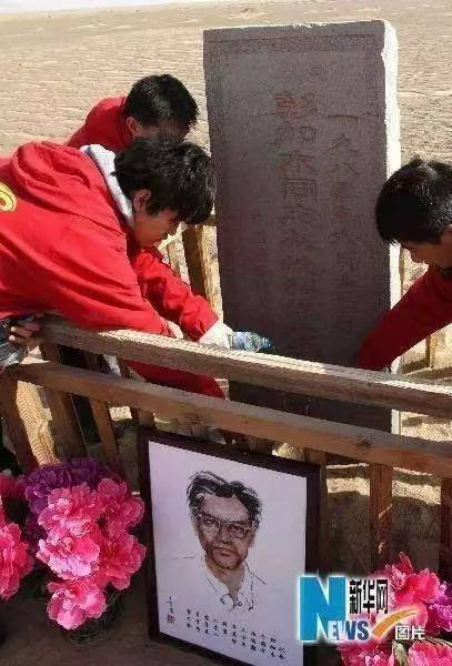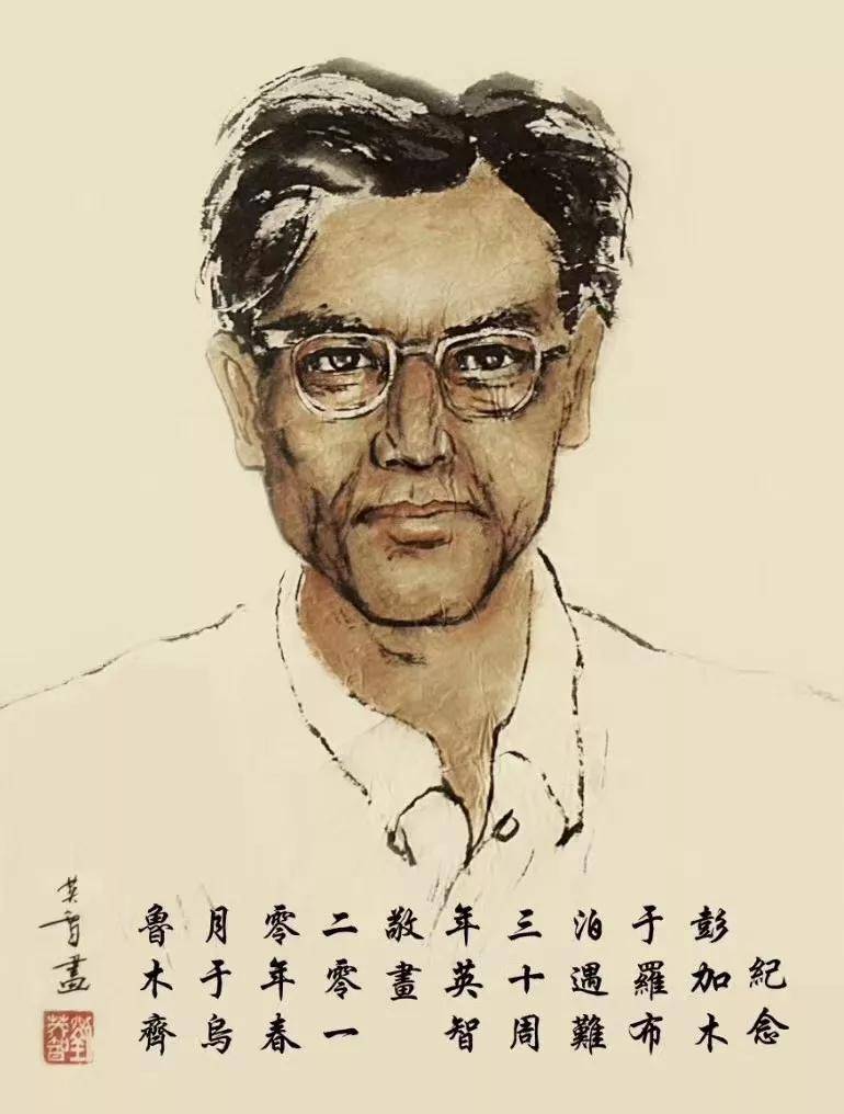 图1:2009年,刘英智为彭加木先生画的画像,最后被放置在罗布泊彭加木遇难纪念碑下。