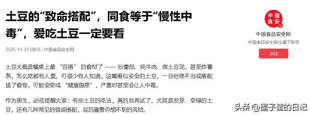番茄土豆汤、番茄炖土豆是国民家常菜,但这对组合藏着“毒素放大器”。
