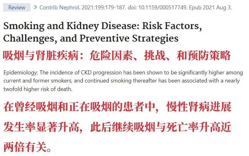 烟草中的尼古丁、焦油、一氧化碳、重金属镉铅、多环芳烃等多种肾毒性化学物质,对内皮细胞有毒性作用,可引发肾动脉硬化、肾小球损伤,加速肾功能衰退,增加尿毒症风险,缩短肾友预期寿命。