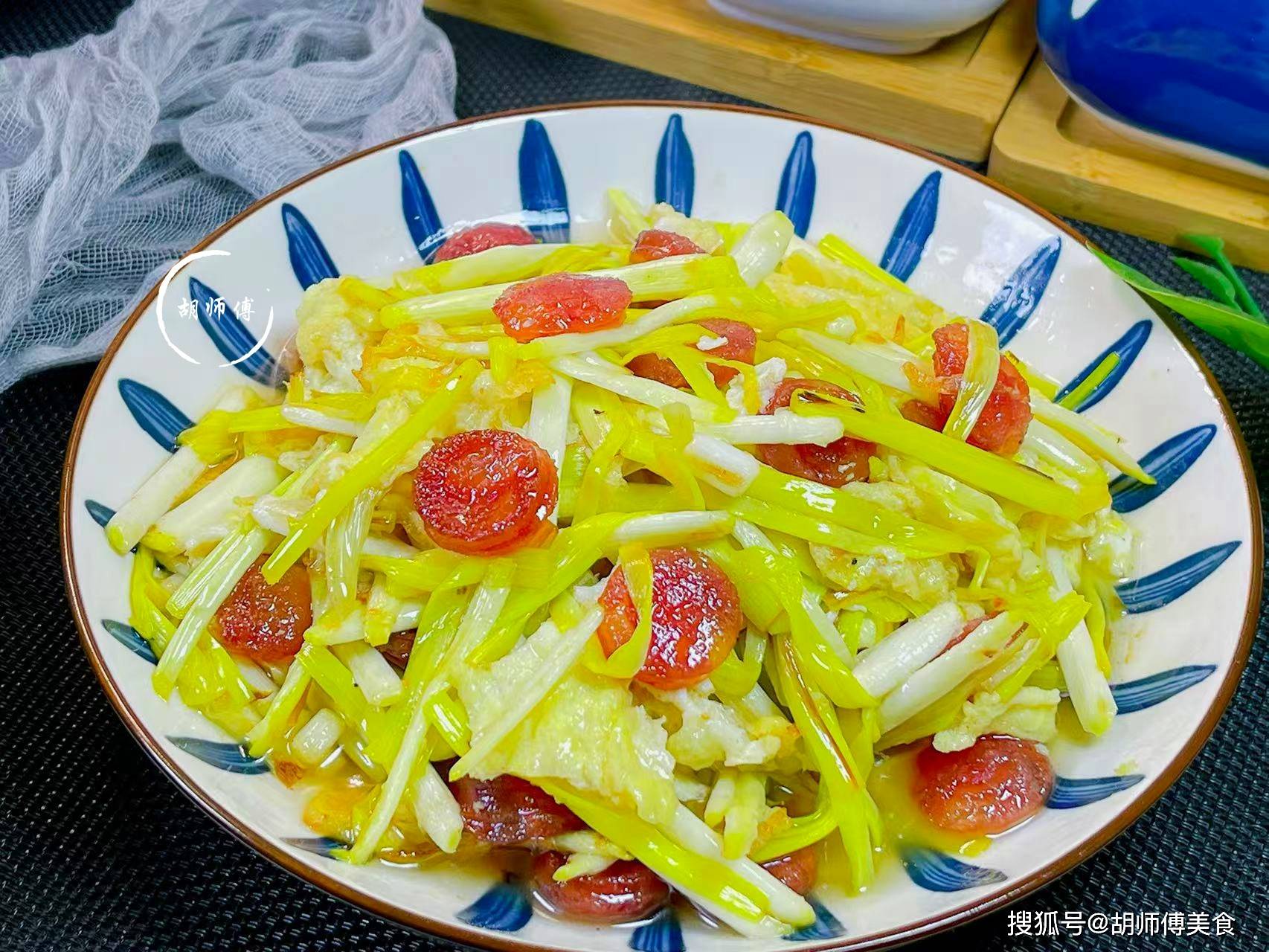 【食材准备】:韭黄300克、甜肠2-3根、鸡蛋1个、食盐、胡椒粉、食用油适量。
