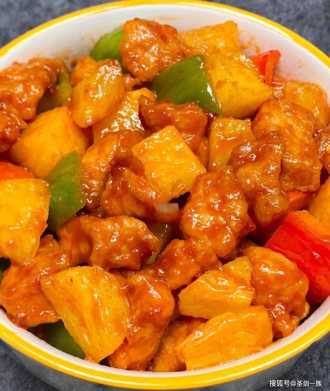 8. 将炸好的肉丁倒入糖醋汁中,快速翻炒,让肉丁均匀裹上糖醋汁。