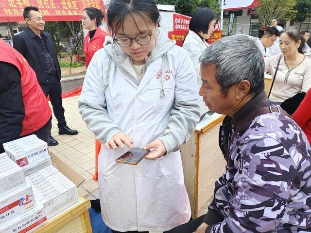 另一处地,医护人员正有序开展配套服务,免费为群众测量血糖、血压,认真记录健康数据,并针对检测结果进行一对一解读。对于指标异常的居民,他们及时提醒注意事项,细致讲解慢性病防控知识。针对高血压、糖尿病等常见慢性病患者,现场免费发放对症药品,并耐心说明用药剂量、服用时间及相关禁忌,切实减轻群众的就医负担。据悉,本次活动累计发放感冒、降压、降糖、消炎等常用药品200余盒,有效缓解了部分群众“买药远、买药贵”的实际困难。