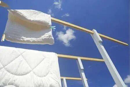 很多人晒被子都是裸晒,在被子上加一层旧的纯棉床单,可避免因强光照射导致面料变黄褪色,又能挡住灰尘。