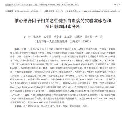 [1] 丁静.核心结合因子相关急性髓系白血病的实验室诊断和预后影响因素分析 ,检验医学,2024-07-30