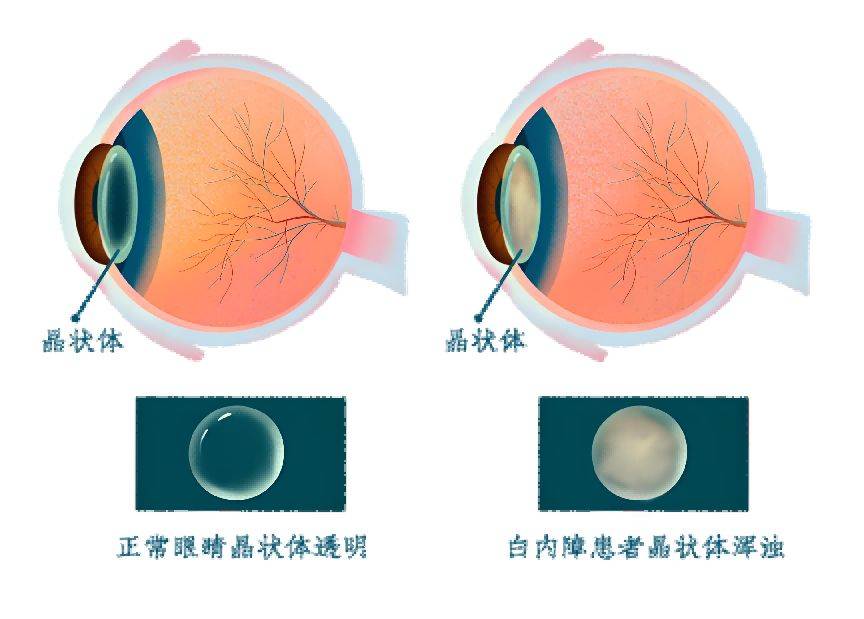正常人年纪大了之后,晶体发生老化,蛋白质发生变性浑浊,一开始部分浑浊,逐渐发展为大部分浑浊,最后完全浑浊。完全浑浊的晶体就是我们常说的白内障成熟了,这个时候光线进不去就失明了。