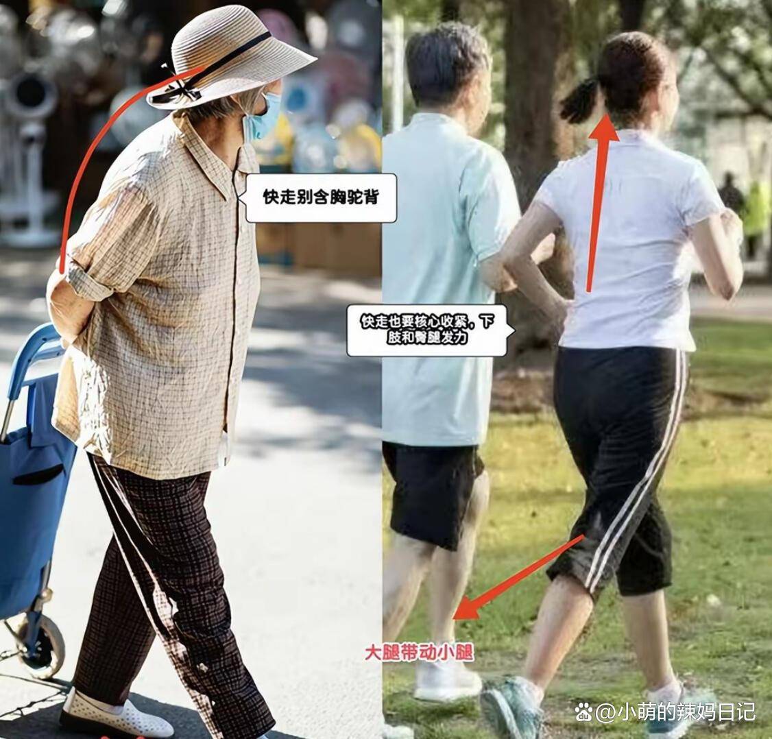尤其是快走的时候,如果喜欢含胸驼背,久而久之,即便成功瘦身,体态照样会很差;快走一定要收紧核心,通过下肢和臀腿发力,用大腿带动小腿,肩背保持直挺的状态。