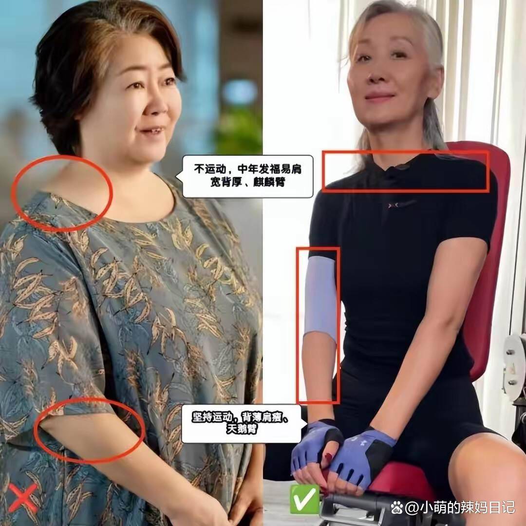 对比图2.不运动变油腻大妈VS坚持运动变女神