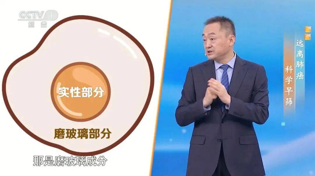 密度低于实性结节,不足以掩盖其中走行的血管和支气管影,就像磨砂玻璃一样。