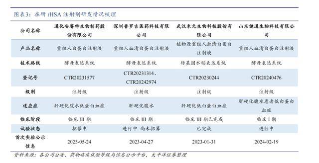太平洋证券研报指出,目前全球在研的重组人血清白蛋白产品基本均以肝硬化相关并发症为适应证,而肝脏疾病在白蛋白临床使用比例不到10%。