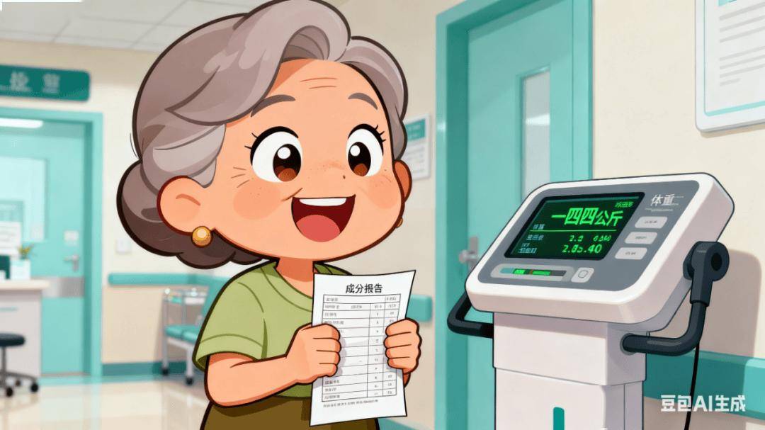 在脂肪肝与体重管理门诊,阿姨完成了体成分检测。当屏幕上的结果跳出来时,她的眼睛一下子亮了:距离上次复诊才三个星期,体重轻了四公斤,就连内脏脂肪面积等关键数据也都有了明显下降。笑容顺着眼角的皱纹蔓延开来,那是努力终于有了回响的欣慰。她攥着报告单,声音里带着点激动:“总算没白吃这些苦啊!” 这段日子,她把医生的建议刻在心里,饮食上每一顿都精心搭配、严格控制,锻炼时再累也咬牙坚持 —— 那些藏在三餐和汗水里的认真,此刻都变成了这份喜人的结果。