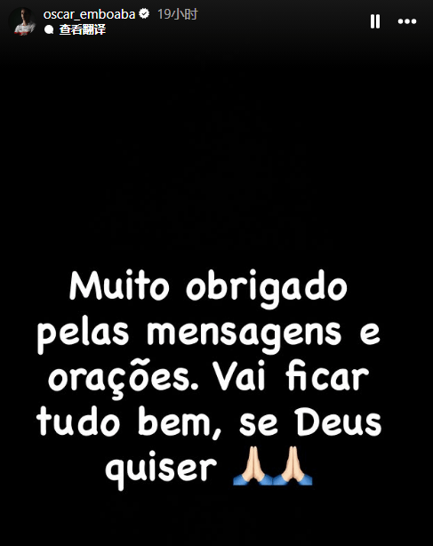 这次意外带来的恐慌让奥斯卡正在考虑提前退役,结束自己的职业生涯。因此,最终的诊断结果对于这位中场球员的未来至关重要。周三上午,他也通过社交媒体安抚了球迷:非常感谢大家的慰问和祈祷。一切都会好起来的,愿上帝保佑。
