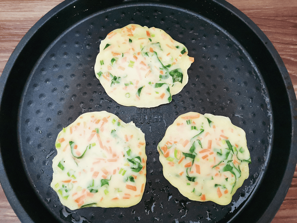 4、用两面一起加热,有水蒸气冒出来,就定型了,逐一翻个面,继续盖住加热几秒,就熟透了,盛到盘子里即可。