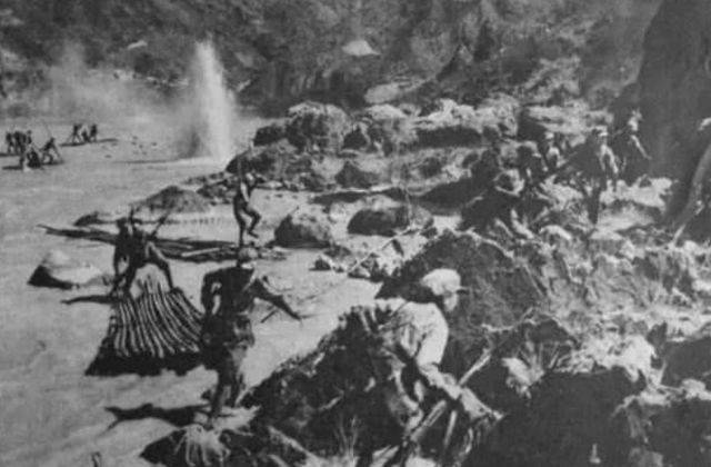 然而,计划刚开始实施,局势便陷入了困境。1935年1月2日上午9点,渡江计划正式启动。红军首先在渡口展开佯攻,部队一边模拟架桥,一边展开射击,制造出要架桥渡江的假象,成功引起了敌军的注意。敌人迅速做出反应,展开还击并修筑防线。与此同时,毛振华等几名勇士背着驳壳枪,跳进了冰冷的江水,按照原计划开始强渡。尽管寒冷刺骨,炮弹和迫击炮的火力压制让他们的前进变得异常艰难,但他们依然坚持不懈,终于成功抵达了对岸。然而,由于敌人的猛烈炮火,携带的缆绳被打断,导致无法继续架桥,计划宣告失败。面对眼前的困境,战士们开始怀疑,难道只能依靠当地群众所说的大木船、好船夫和大晴天来渡江吗?
