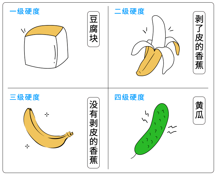 - 3 级:状态类似 “未剥壳的香蕉”,硬度足够完成互动,但不够坚挺、稳定性稍差;