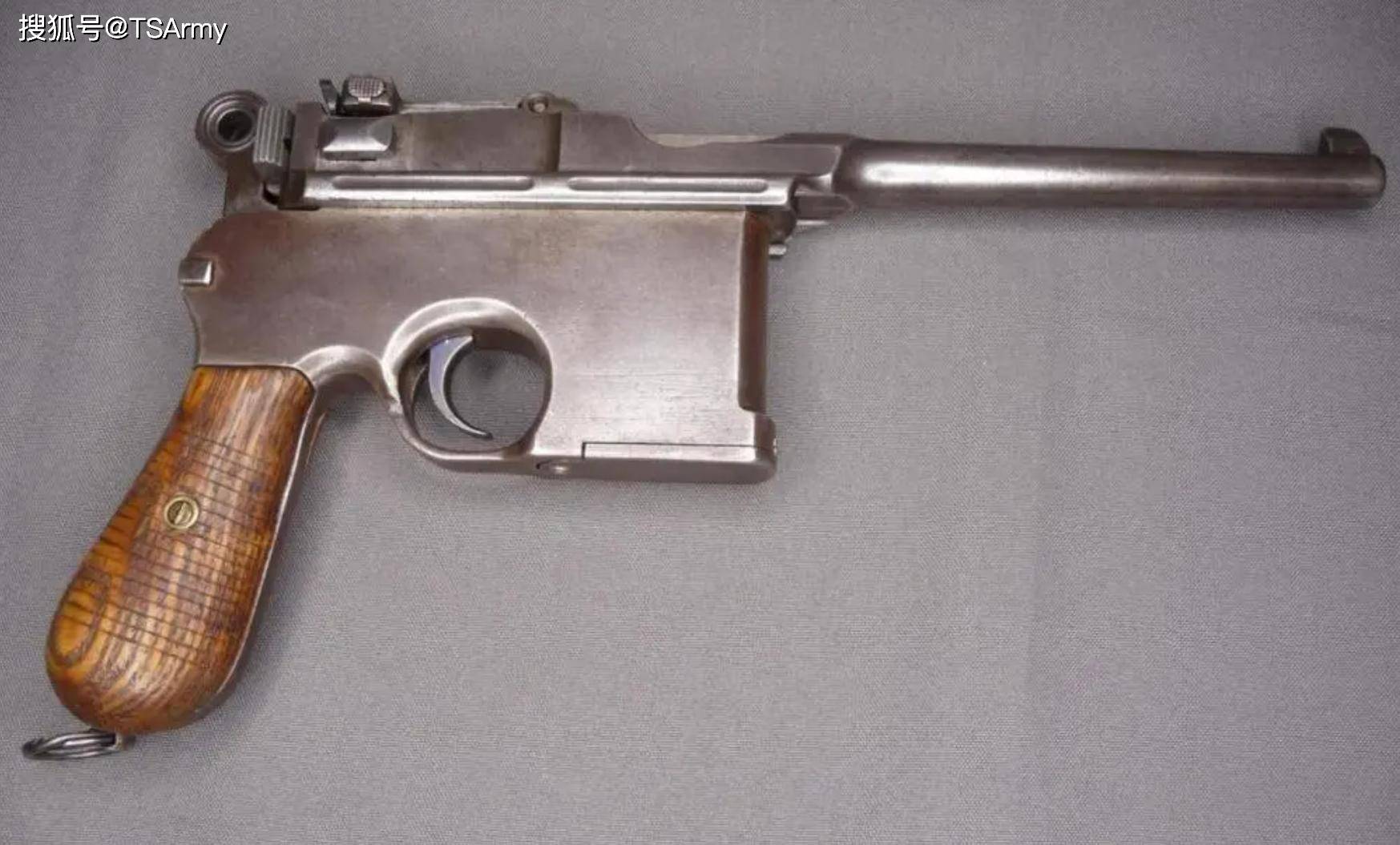1、大沽造镜面匣子 奉军的军官,从少尉以上职务都会配备手枪,其中使用最多的就是奉军大沽兵工厂生产的镜面匣子手枪。其实,这款手枪是德国毛瑟C96型1899年版的仿制品,外观上与常见的毛瑟C96有所不同,表面光滑如镜,极具光泽,因此被国内称为镜面匣子。这款手枪发射的是7.63x25毫米毛瑟手枪弹,弹夹容量为10发,使用的是10发桥夹从顶部装填。奉军的仿制版与原版性能相近,主要的区别在于握把部分的护片和木料的材质不同,这也导致了握把上的木纹存在差异。