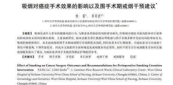 [1]杨露.吸烟对癌症手术效果的影响以及围手术期戒烟干预建议,2023-11-20
