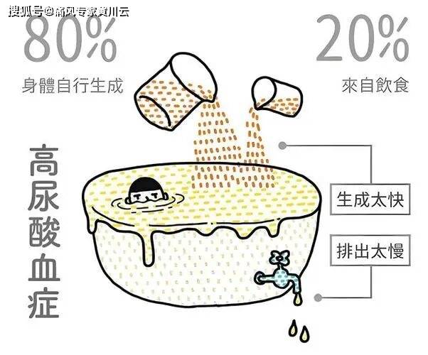 少数人是因为尿酸生成超出了身体的排泄能力: