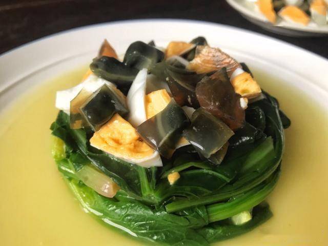 所需食材:菠菜200克、皮蛋2个、生姜2片、盐适量、白胡椒粉少许、香油1勺、清水适量、枸杞10粒(装饰用,可选)。