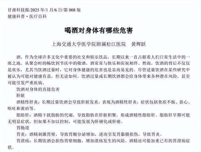 喝酒对身体有哪些危害 黄辉跃 甘肃科技报2025-01-06