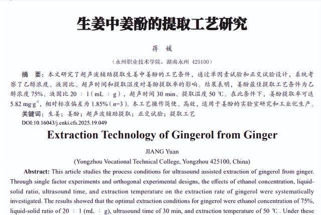 [1]生姜中姜酚的提取工艺研究 蒋媛 食品安全导刊 2025-07-05