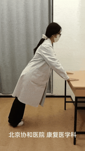 要领:双脚与肩同宽,双手撑在稳固桌边,双手间距略宽于肩,身体前倾,身体与桌沿约呈45度角,屈肘向下至胸部靠近桌面,注意身体成一条直线,发力撑起还原。后期可逐渐增加角度。