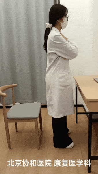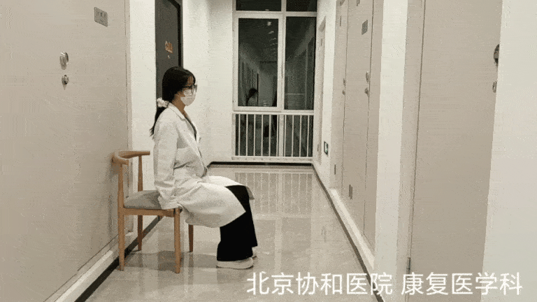 要领:站立位双脚与肩同宽,坐于椅子(注意椅子高度不可超过膝盖)边缘,伸直一侧腿后站起,另一侧脚踩或搭在椅子上,身体不要旋转(骨盆中立),伸直侧腿膝盖微曲(膝盖与脚尖同一方向,不过脚尖),保持背部挺直上半身前倾30~45°,小腿垂直地面下蹲,使搭于椅面侧腿膝盖找地板。