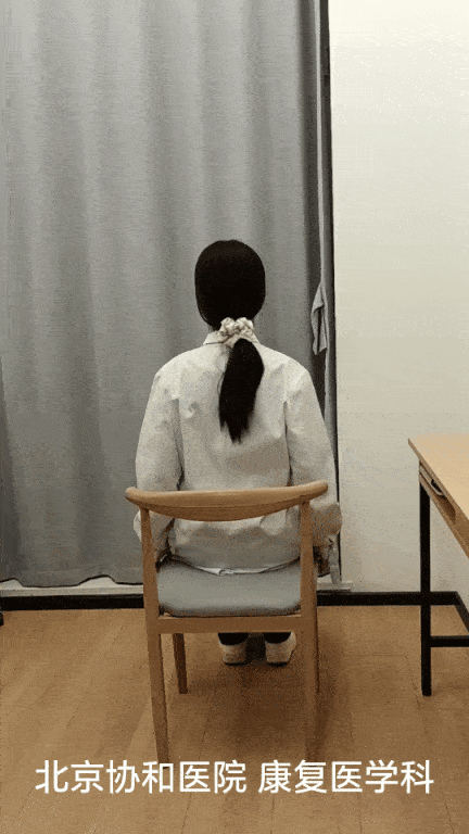 要领:坐直于椅面,双脚踩实地面,双手交叉放胸前,左右交替转体至最大幅度,感受腰部发力。