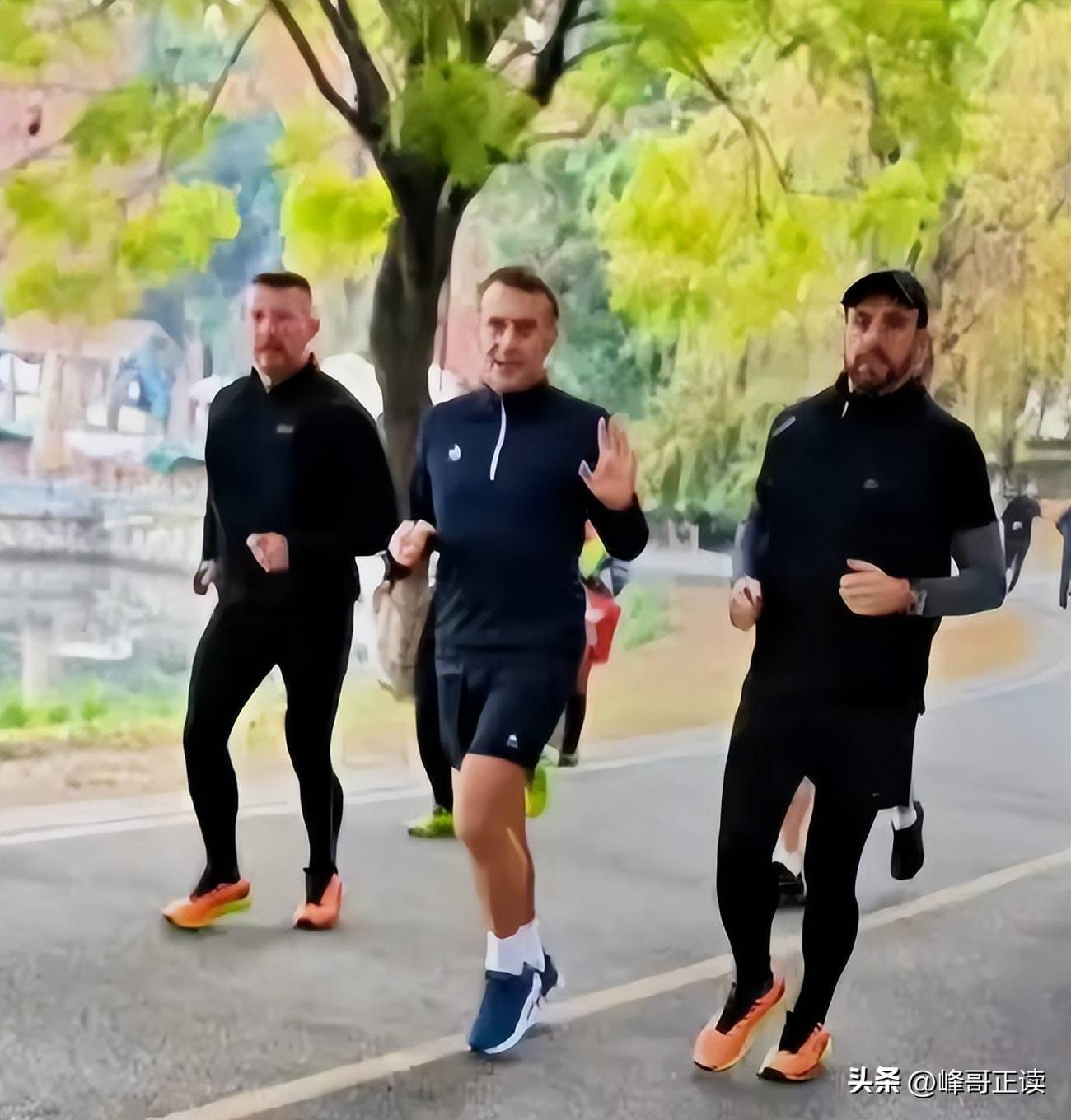 12月5日清晨,马克龙便穿着运动装来到了成都锦湖公园晨跑。不得不说,长期坚持锻炼让人看起来更加年轻,47岁的马克龙看上去身形健硕,肌肉线条分明,即便在寒冷的天气下,他仍然穿着短裤跑步,身材看起来比旁边的保镖还要结实。