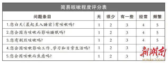 首都医科大学附属北京朝阳医院呼吸与危重症医学科主任医师安立建议,用“简易咳嗽程度评分表”可初步评估病情,总分5~25 分,分数越高代表咳嗽程度越重。