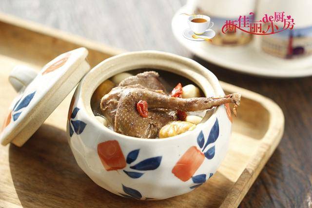 推荐菜谱【板栗莲子鸽子汤】 原料: 鸽子 1块 板栗仁 1小碟 莲子 1把 姜 少许 枸杞 1小把 油盐