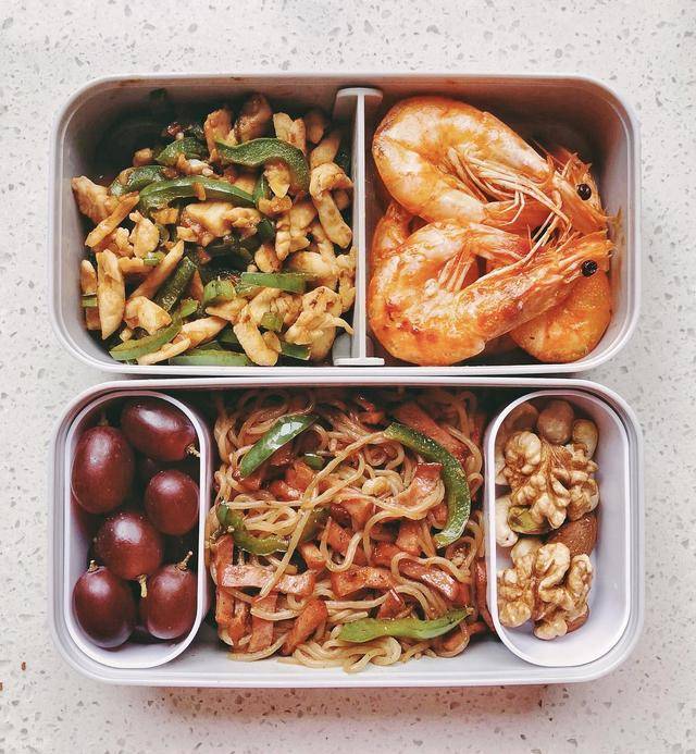 中午带饭的搭配原则是:一拳主食 + 一掌蛋白质+ 两拳蔬菜”,饭前先喝一杯水可以降低饥饿感,饭吃八分饱是比较健康的吃法,一顿饭下来会比外卖少摄入150-250大卡的热量摄入,可以更好的控制体重。