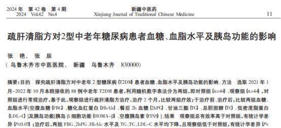 [1]张艳.疏肝清脂方对2型中老年糖尿病患者血糖、血脂水平及胰岛功能的影响[J].新疆中医药,2024