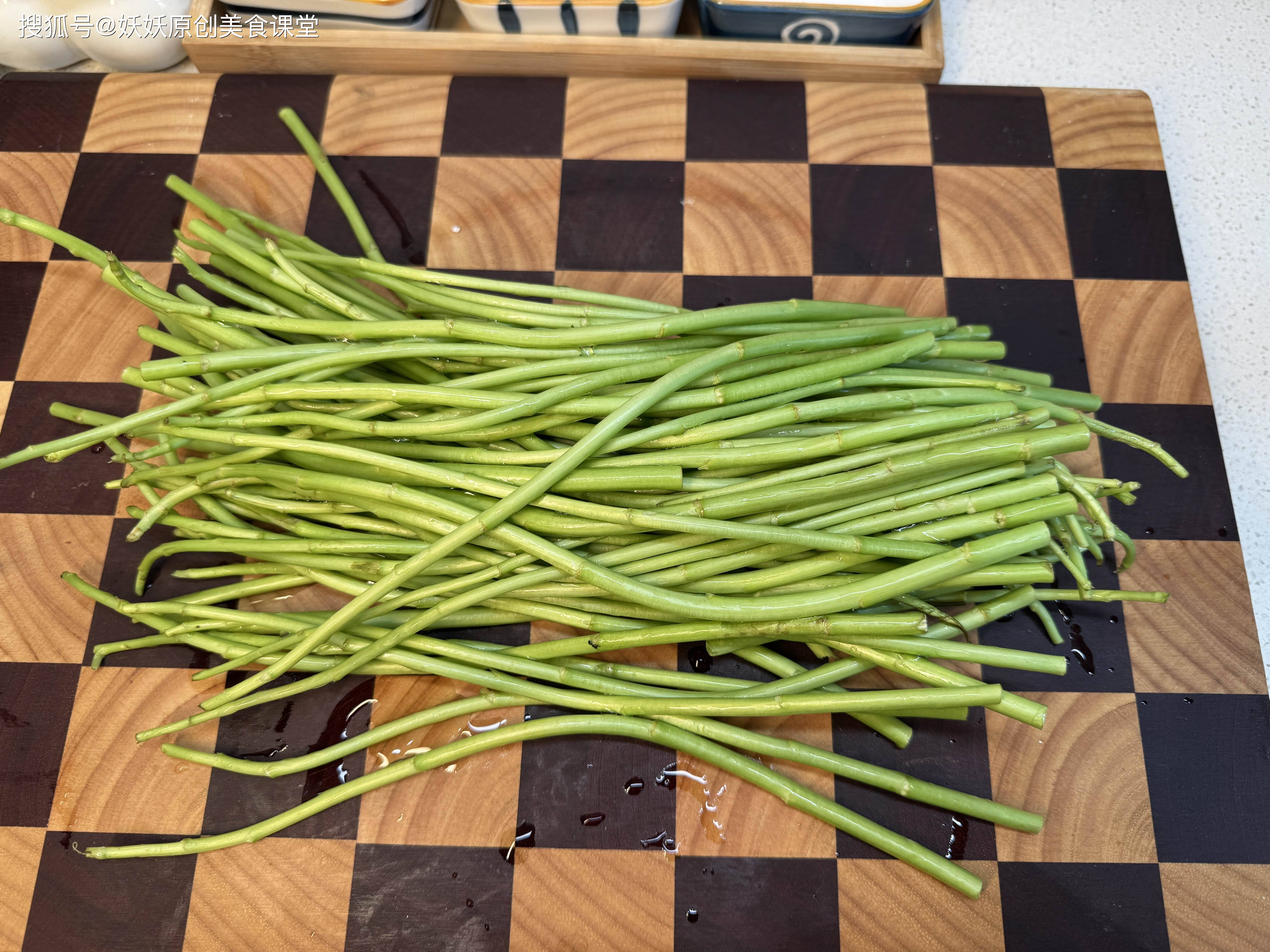 1,藜蒿适量,这是去掉叶子后的藜蒿,头部老一点的可以切掉不要,不然口感不脆。