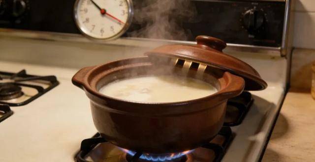 大火把水烧开后,转小火慢炖一个半小时。这个过程不用频繁翻动,让羊肉在汤里慢慢焖煮,直到肉质软烂,汤变得奶白浓郁。最后加入少许盐调味即可,不需要加任何其他调料,比如八角桂皮等,这些调料会掩盖食材本身的鲜味,破坏汤的温补功效。