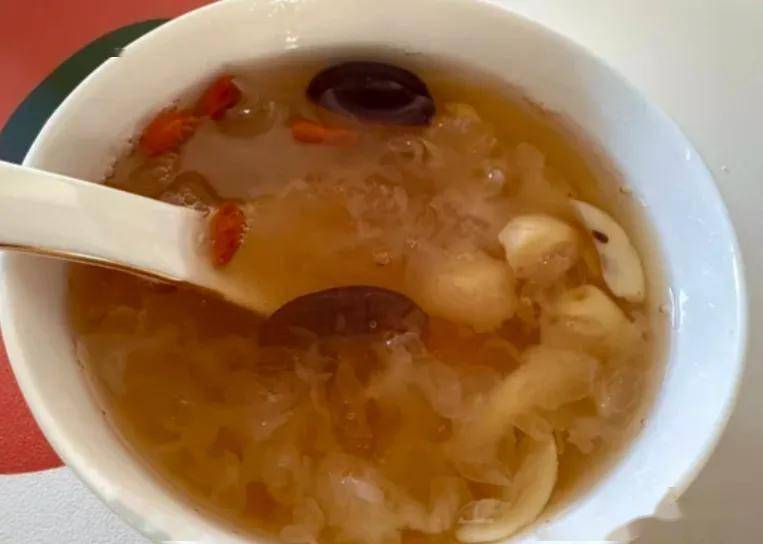 懒人必学【五分钟出胶法】:干银耳冷水泡发后剪碎,加沸水放进保温杯焖1小时,倒进锅里加红枣煮10分钟,胶质浓得能粘嘴唇。加点鲜百合清火,或者丢几颗桂圆补气血,甜滋滋的连奶茶都戒了。