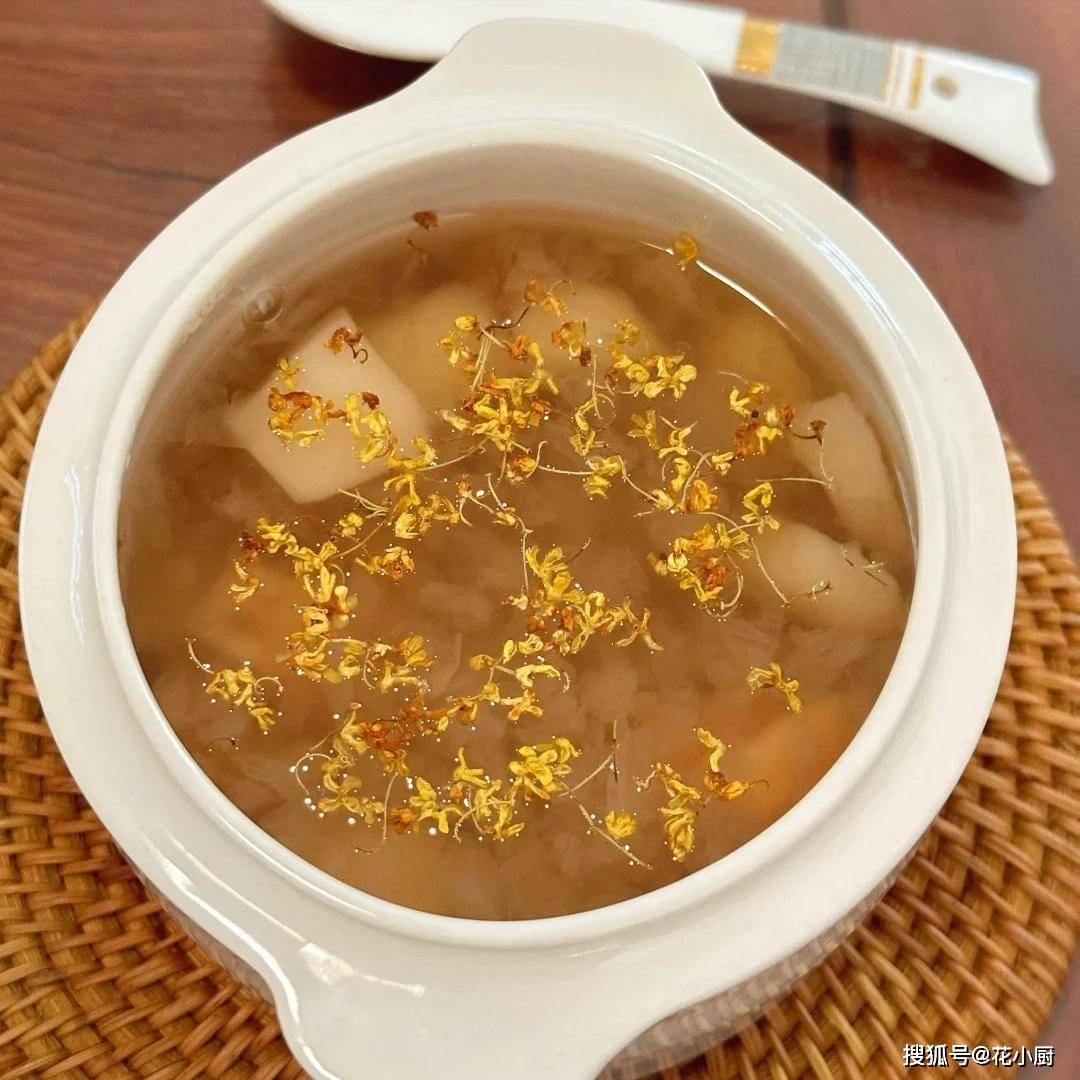 这碗汤啊,喝上一口,哇,那叫一个香甜滋润。银耳滑溜溜的,莲藕粉粉糯糯的,马蹄清甜爽口,再加上桂花的香气,在嘴里炸开,那感觉,就像在舌尖上开了一场美食派对。宝子们,赶紧试试这道汤,让自己在这个秋冬季节美美的,把秋燥统统赶跑!