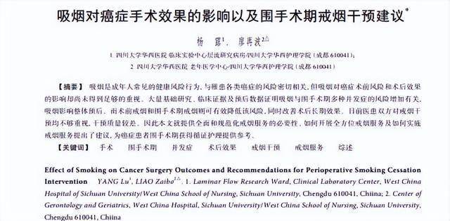 [1]杨露.吸烟对癌症手术效果的影响以及围手术期戒烟干预建议,2023-11-20