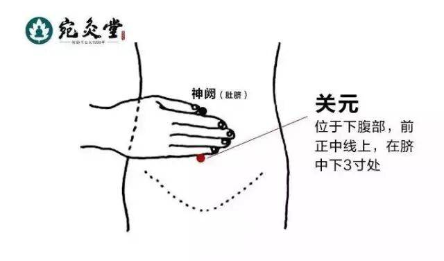关元穴在下腹部,前正中线上,当脐下3寸。人体先天之气海,艾灸此穴可有升阳举陷、益肾调经、通利小便、健脾止泻之效。