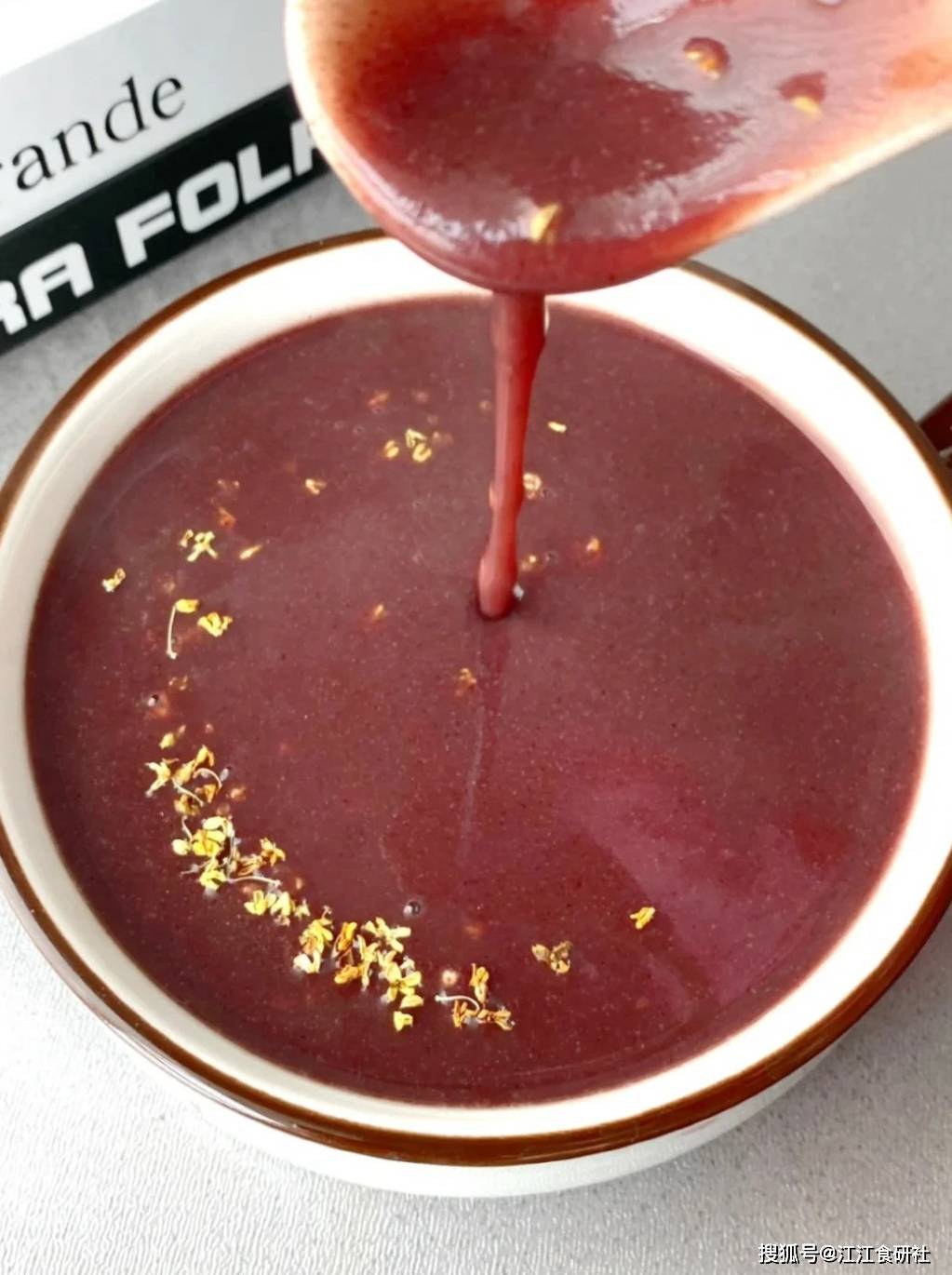 这碗糊糊颜色紫红悦目,口感绵密香滑,带着淡淡的苹果清香,清晨喝下一碗,感觉从内到外都得到了滋润,寓意着阴阳调和,根基稳固。