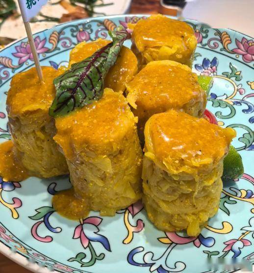 黄绿色的菜墩,摆在盘子里像小蛋糕。