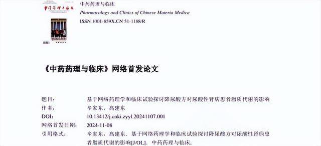 [1]辛家东,基于网络药理学和临床试验探讨降尿酸方对尿酸性肾病患者脂质代谢的影响,2024-11-08