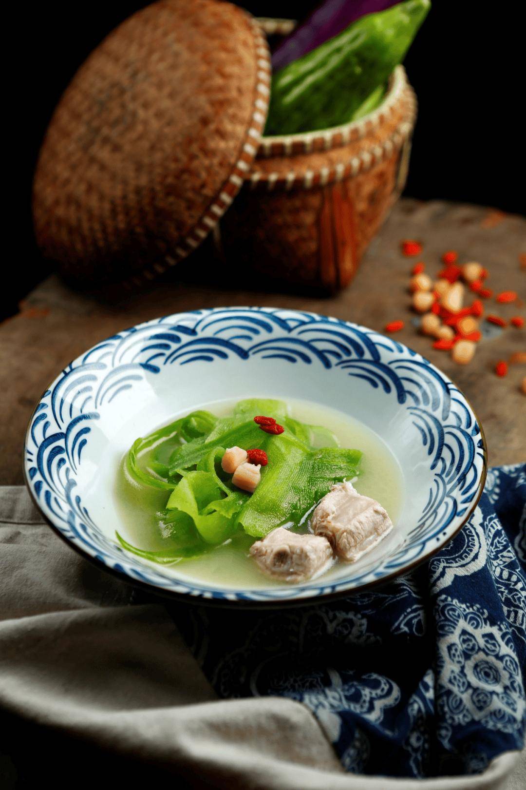 “肥者令人内热,甘者令人中满”(《素问·奇病论》),许多人向超重和肥胖转变,往往是从喜食肥甘厚腻、食欲旺盛开始的。中医常将这种食欲旺盛称之为“胃火”,治疗上强调“以苦制甜”。苦瓜,《随息居饮食谱》载:“青则苦寒涤热,明目清心。可酱可腌,鲜时烧肉,先瀹去苦味。”具有泻火除热之功。其佐以猪骨、瑶柱增鲜提味,生姜辟腥和中,尤宜易上火而见口干口苦、眼目容易干涩充血人群作保健食用。