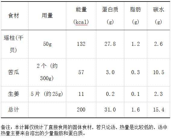 猪骨300g,瑶柱(干贝)50g,苦瓜2个,生姜5片,食盐适量。