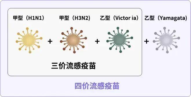 四价流感疫苗比三价可以多预防一种流感病毒的毒株亚型(如下图),具有更全面的保护效力。