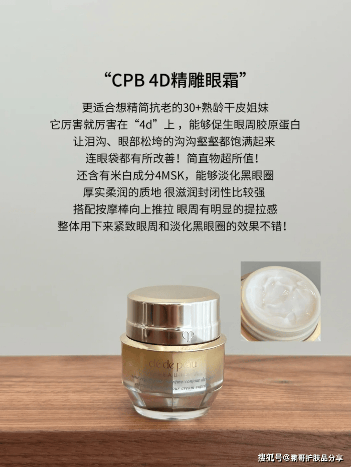 贵妇眼霜天花板的效果真不是吹的,坚持用,就能发现眼周看起来丰盈许多,困扰我很久的泪沟都感觉嘭起来了,整个人立马显年轻几岁,心而且眼周的小细纹和暗沉也肉眼可见的淡化,化妆不容易卡纹。
