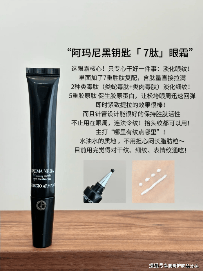 这支眼霜的淡纹速度是我用过最快的,也就是用了7天,就能肉眼可见眼纹淡化,核心成分是7种胜肽,包含了类蛇毒肤+类肉毒脑,淡纹实力没话说,就像上了快车道了一样。