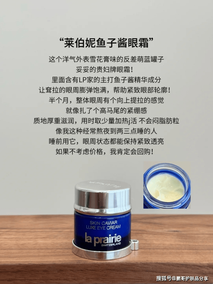 经典的深海鱼子酱精华,可以很好的紧致眼周、消褪水肿,深润眼周的同时,紧紧锁住眼周水分,它是很瓷实的乳霜质地,还自带一个按摩棒,不会油腻和闷脂肪粒。每次用完都觉得踏实又安心,眼周肌肤一整天又紧又润。